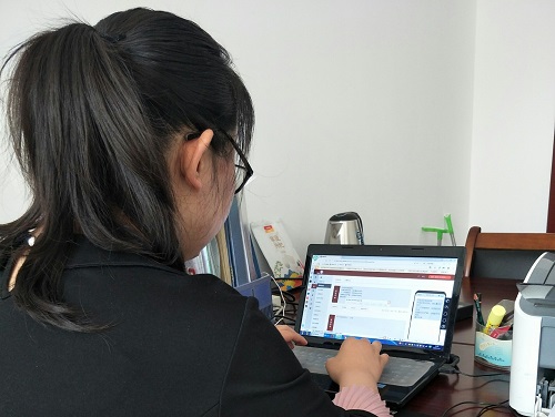 “五一”前夕,文安县纪委监委宣传部工作人员在廉政短信教育平台上编辑发送廉政短信