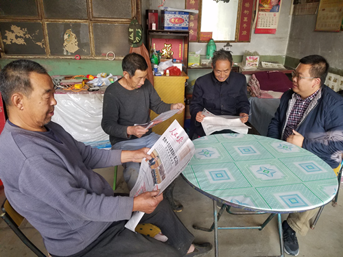 固安县纪委第一纪检监察室工作人员为马庄镇辛家村村民解读十九大精神