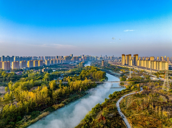 2022年11月5日,“半是公园半是家”的生态城市江苏淮安,薄雾轻拂的清晨美如画卷。(图片来源:视觉中国)
